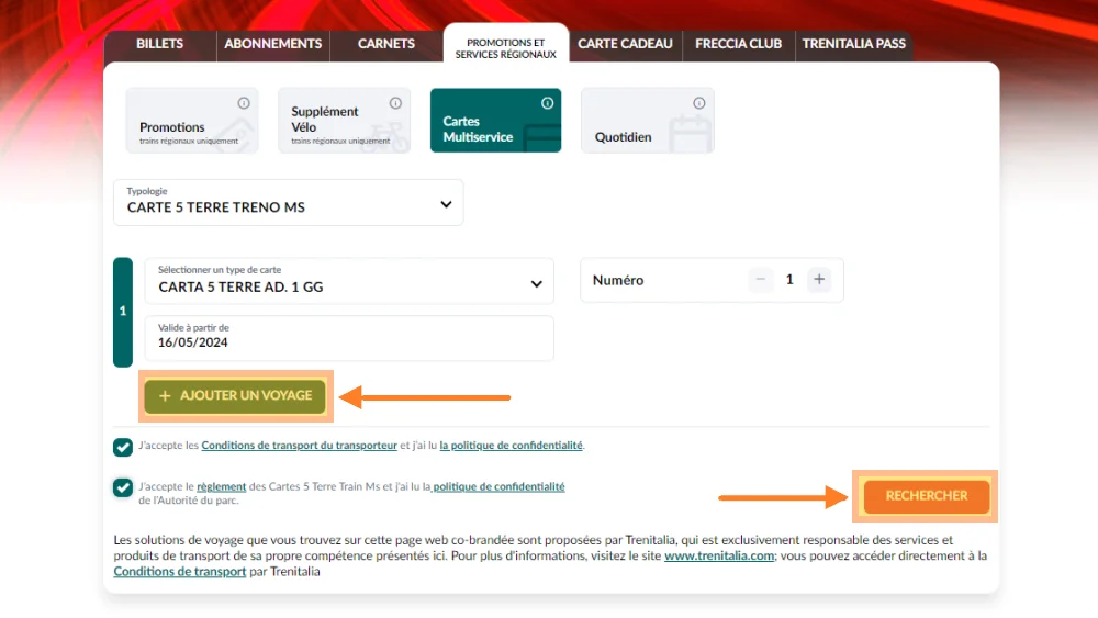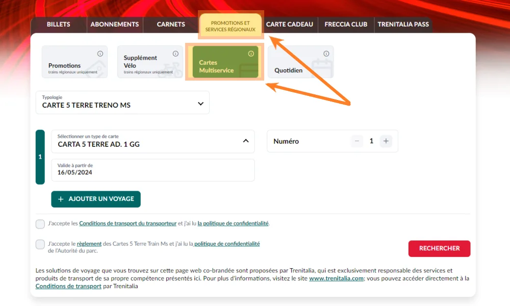 Comment acheter une Cinque Terre Card en utilisant le site Internet de Trenitalia ?