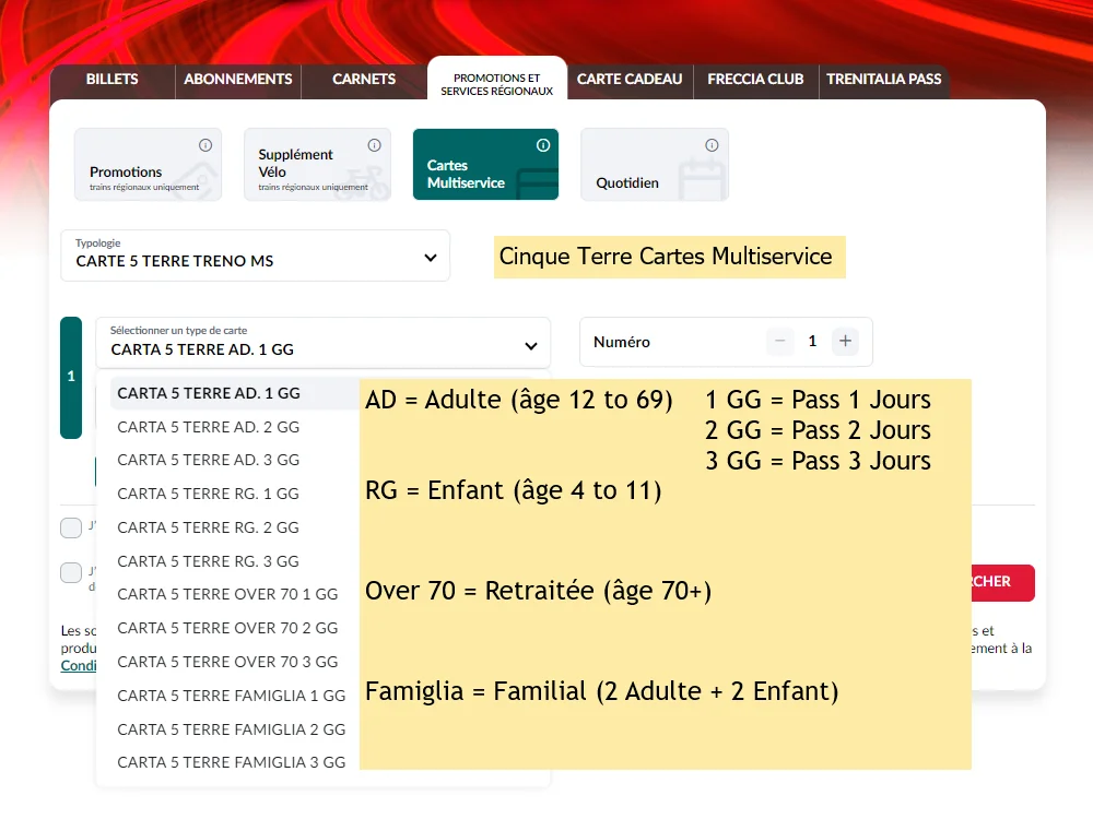 Carte Trenitalia cinque terre formulaire d'information des passagers